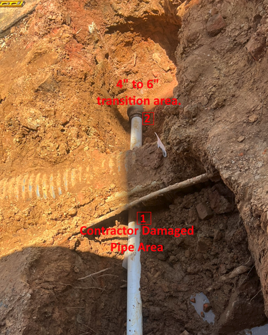 · The photo is of position (2), outlined above. The photo submitted is NOT of the contractor damaged section position (1).